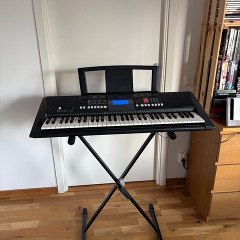 Yamaha PSR-E363 keyboard med 61 tangenter. Elektroniskt musikinstrument med olika ljud- och rytmfunktioner, lämpligt för nybörjare och avancerade användare.