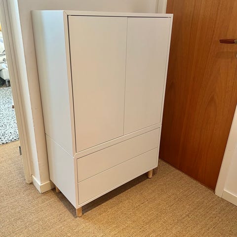 Mycket fint skick. Två av skåpen har ben monterade. Det går även att köpa väggfästen på IKEA.