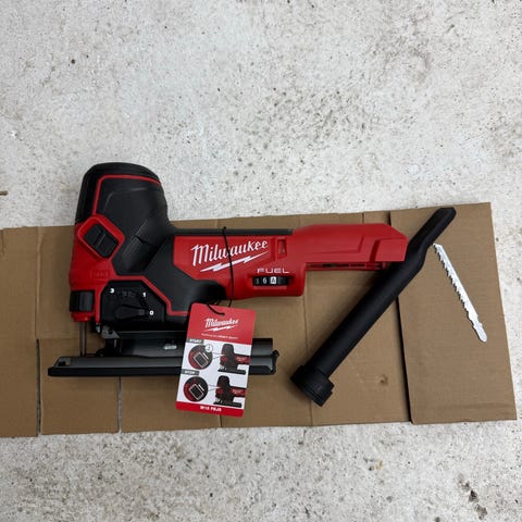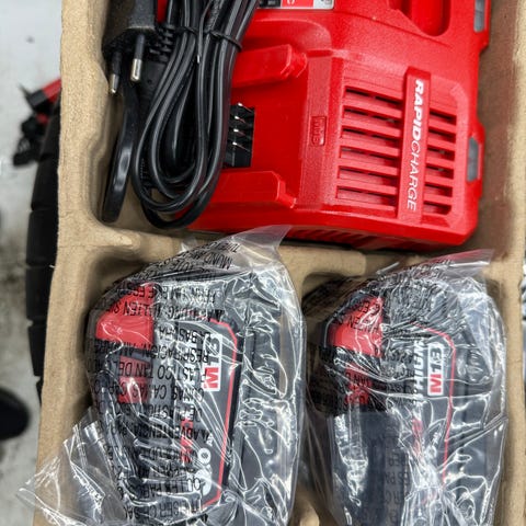 Milwaukee M12 multiverktyg med tillbehör och 4.0 Ah batteri.