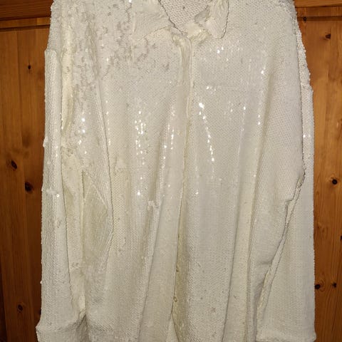 Skräddarsydd knytblus i strykfritt material i strl 48/50. Rynkad fram och bak samt vid ärmsluten som blir puffade. Knappar fram och vid ärmsluten. Avhämtning eller frakt.