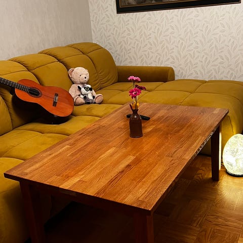 Jättefint soffbord i trä, rejält och tungt med två lådor. Köpt på MIO, nypris 3000kr