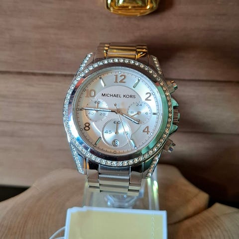 Michael Kors klocka för kvinna i guld. Klockan har en metallarmband och en urtavla med romerska siffror samt flera mindre urtavlor för extra funktioner. Levereras i originalförpackning. 2800kr.
