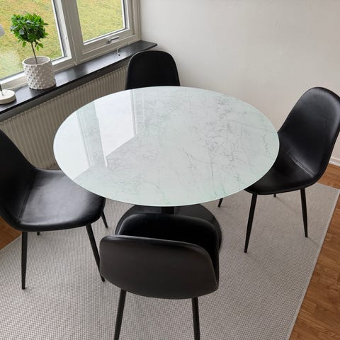 Hej! Säljer min matgrupp då jag ska flytta. Blev några repor i flytten men går måla över eller lägga duk eller liknande. I övrigt nästan aldrig använt