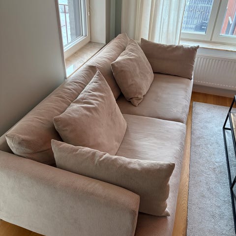 Soffan heter Harper i färgen Dita dark blue och kostar ordinarie pris 16 995. Den är i gott skick haft den ca ett halvår.