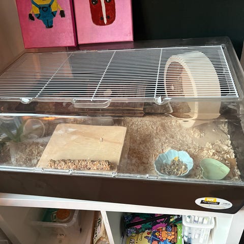 Nu söker vi ett nytt hem åt denna fina lilla hamstertjej (född 8/9-25). Hon har färgen svart sköldpadd dominant spot. Vi kommer välja ut hemmet med omsorg.