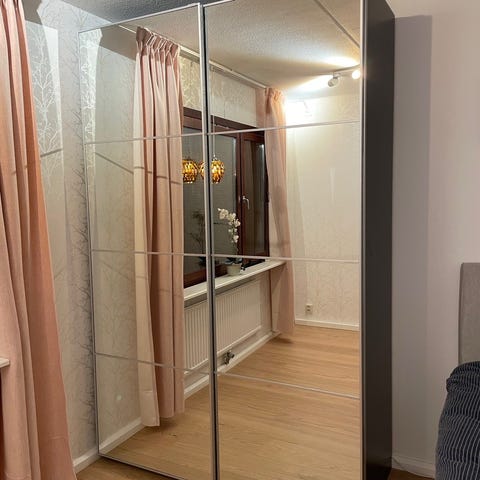 Säljer PAX-garderober från IKEA med tillhörande spegeldörrar.