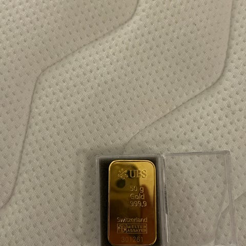 UBS Guldbar med en vikt på 10 gram och en renhet på 999,9. Tillverkad i Schweiz. Serienummer 429220. Certifierad och förseglad för äkthet.