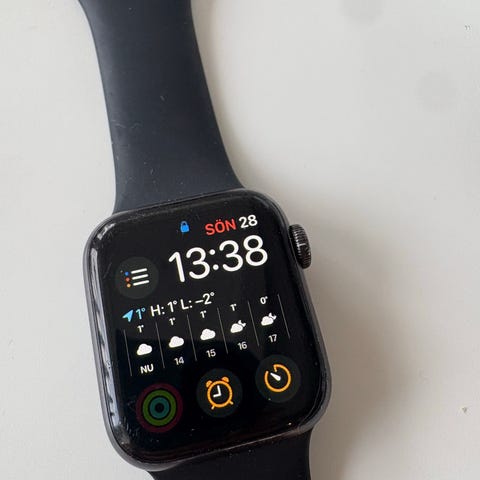 Apple Watch SE (gen 1, GPS), Space Gray, 44mm, svart Sport Band M/L. I bra och använt skick enligt bilderna. Laddare medföljer.