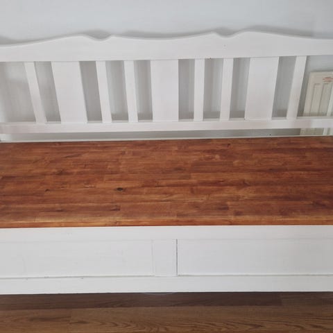 Säljer en jättefin Hallsoffa i trä, med inspiration från Wilma serien.