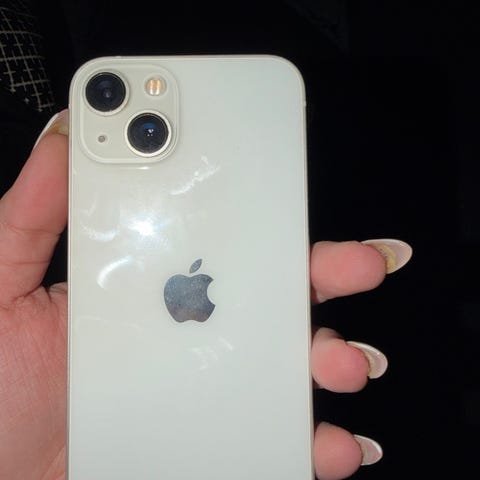 Apple iPhone 13 mobiltelefon med 128 GB lagringsutrymme i vit färg.