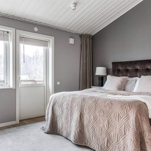 - Sänggaveln står på två fötter vilket gör att du ej behöver montera fast den på väggen