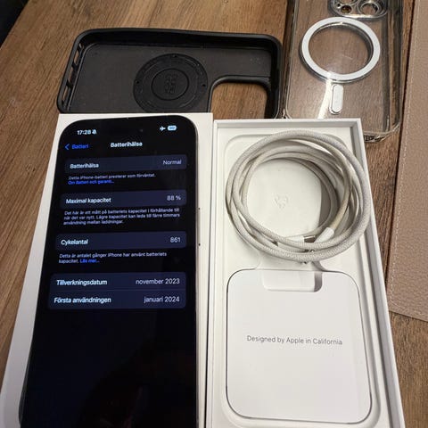 iPhone 15 Pro, 256 GB TOPPSKICK 90% batterihälsa