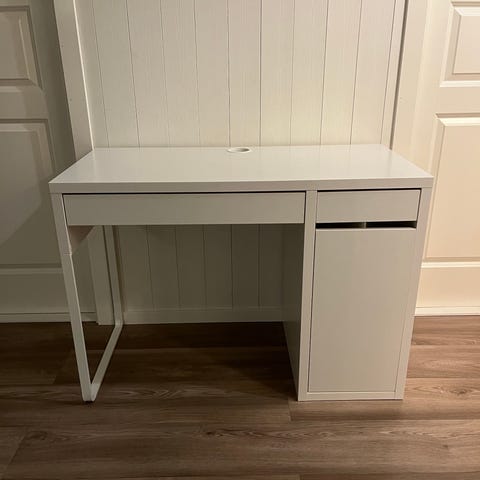Säljer ett skrivbord från IKEA. Bänkskivan är modellen Linnmon med Adils ben. Lådhurts är Alex.