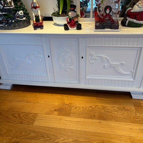 Mycket fint skick. Längd 191 cm. Djup 43,5 cm. Höjd 65 cm. 2st hyllplan inne i skåpen.