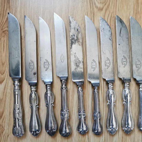 Tolv äldre ostknivar.