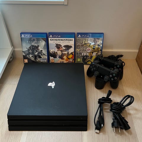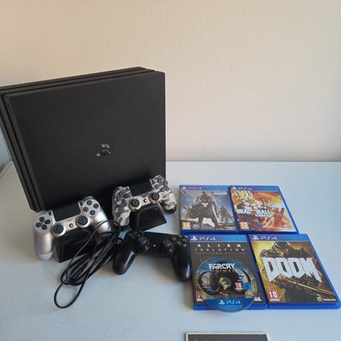 PlayStation 4 Pro med kontroller och spel
