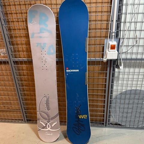 2. Röd snowboard i mörket Warp. 124 cm. = 500 kr.
