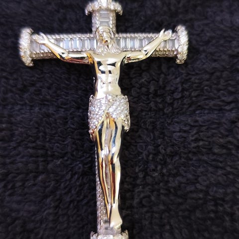 Stort ihåligt kors i sterling silver 925 med cz bling