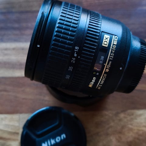 Nikon 18 - 55mm f3.5 - 5.6 med en +10 close up lins. Obs, saknar linslock men legat i socka hela tiden. Tar fina bilder med close up linsen! - Bra använt skick, inga synliga repor. 500kr