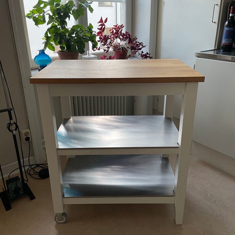 Säljer IKEAS populära köksö Stenstorp i befintligt skick. Massiv träskiva så kan enkelt slipas för att få den i nyskick igen.