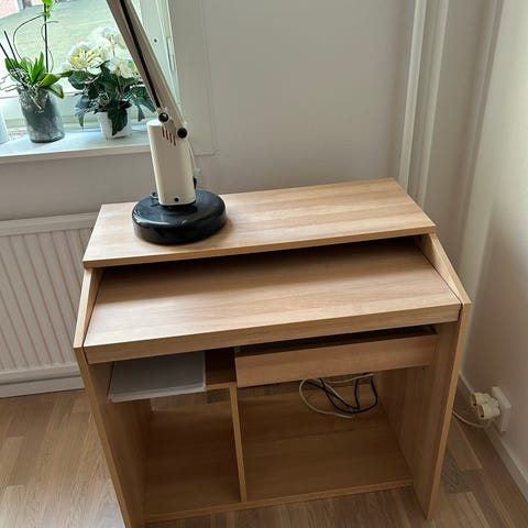 Egensnickrat skrivbord med svart bänkskiva och gråa ben. Allt från IKEA och i bra skick.