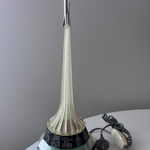 Säljer en Tintin-liknande raket med häftig LED-belysning som växlar i olika färger, samt en matchande Tintin-inspirerad rymdfigur.