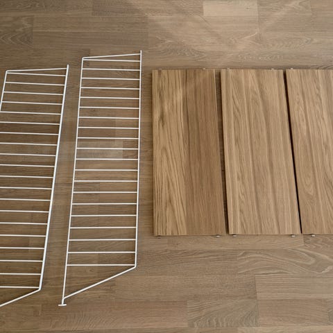 Ett stringhyllplan i valnöt. Mycket bra skick annat än en liten repa på undersidan