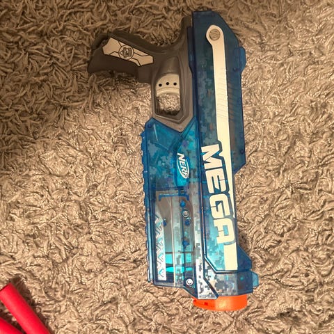 Nerf mega blaster elite röd inklusive mega skott. Enkel att använda och kan hålla upp till 6 st mega skott.
