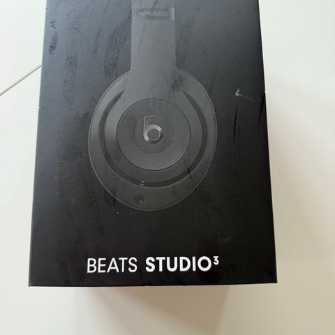 Beats Studio3 trådlösa hörlurar i mörkblå färg. Modell med aktiv brusreducering och överöronsdesign för bättre ljudisolering. Levereras med originalförpackning och hårt fodral för förvaring och transport.