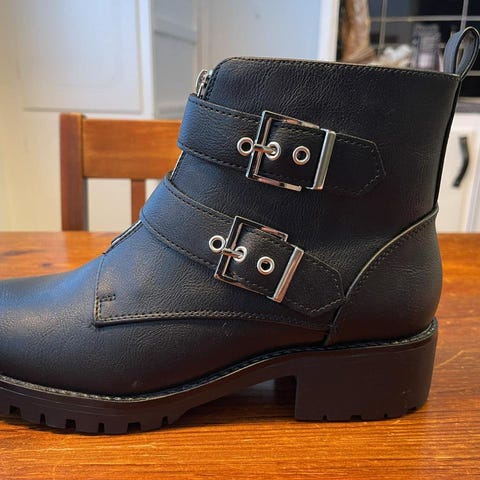 Oanvända, klackhöjd 6cm. Mocka liknande material. Går till under knäna. Själva ”benet” står ej upp av sig själv. Strl 38 men stora i storleken så de passar mig som har 39