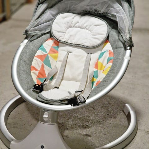 Graco barngunga i grå färg med mönstrad dyna. Utrustad med justerbar sittposition och lekbåge. Passar för spädbarn och småbarn.