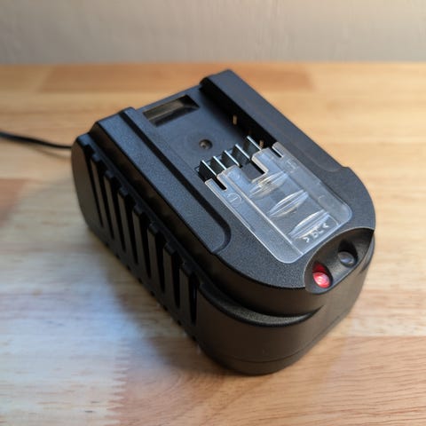 Batteriladdare för två batterier från Julas Meec Tools Multiseries 18 V-system säljes, då jag byter från flera system till ett.