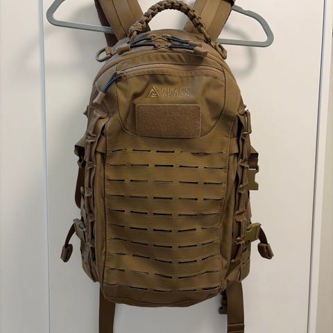 Använd några gånger i skogen, finns någon enstaka fläck på tyget men allting är helt och funkar.