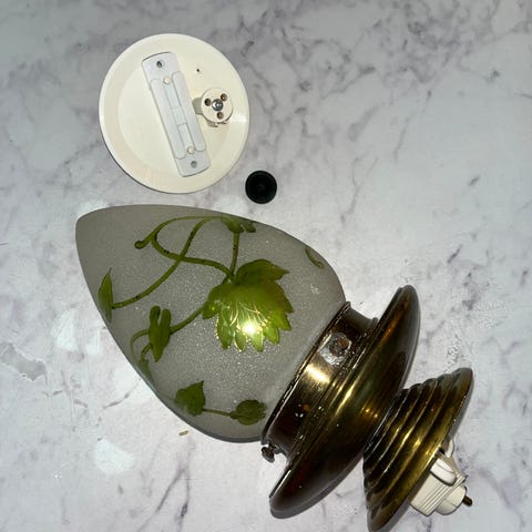 Ljuskupor i opaliserat vitt glas i vacker oval form med skruvgängor för lampsockel i porslin i tal eller på vägg. Kan eventuellt skickas vi behov.