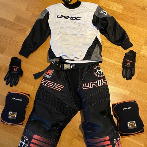 Innebandy Salming målvaktströja och Salming knäskydd båda i storlek XL. Säljer båda för 300 kr.