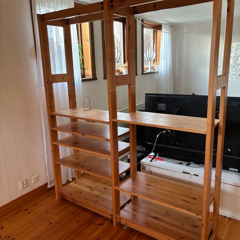 Vit Ikea bokhylla, troligen ”Billy”, 5 hyllplan, 2 m hög, använd men i gott skick. Bortskänkes mot upphämtning. Finns i Skänninge.