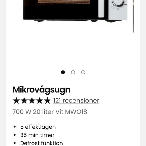 Säljer en mikrovågsugn från Andersson (modell MEO 2.7) pga flytt. Inköpt i våras.