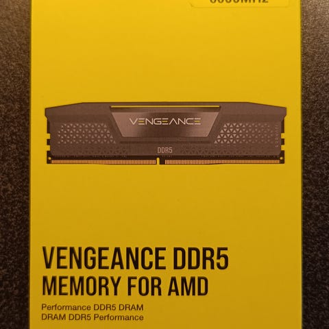 Corsair Vengeance RGB DDR5 RAM-minne med en kapacitet på 32GB (2×16gb) och en hastighet på 6000MHz. Köptes under december, kvitto finns och fungerar som de ska