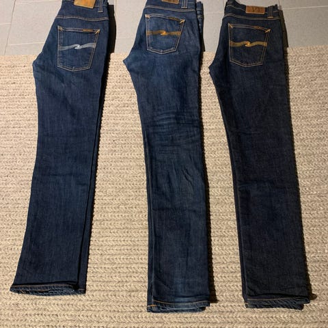 1 par Nudie Slim Jim Dry Japan i riktigt go sjysst tvätt. Strl 29/32 MEN de är definitivt kortare ca 30 length. Köpte dessa själv på Blocket men kunde tyvärr inte ha den. 450 kr