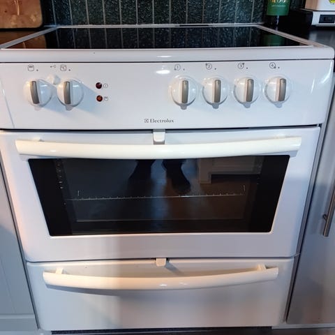 Electrolux glaskeramikspis ren och fräsch med fyra kokzoner och inbyggd ugn. Ugnsutrymmet är försett med fläkt för jämn värmefördelning.