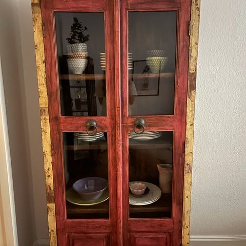 Unikt och vackert vitrinskåp från Bali i Helsingborg. Mått: 180x110x32