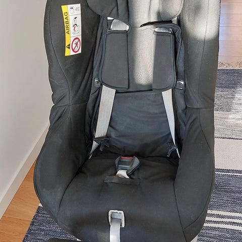Britax Römer Svart där ryggen går att skruva av och göra till bälteskudde. Isofix och lätt att montera.