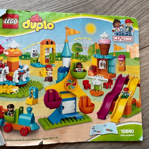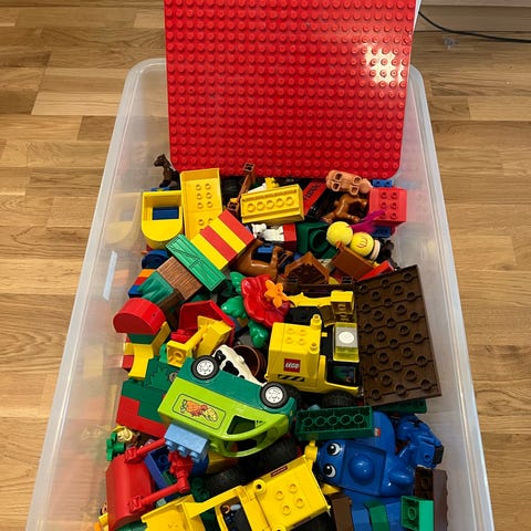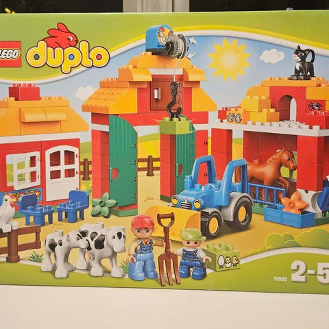 LEGO DUPLO stor bondgård leksak med byggbara delar som inkluderar ladugårdsbyggnader, djurfigurer och tillbehör. Leksaken är anpassad för små barn och är tillverkad i plast med starka färger.