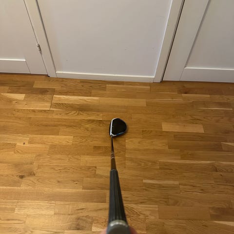 TaylorMade SIM2 Max OS är en golfdriver med ett stort klubbhuvud i svart och vitt. Klubban har en kolmaterialskrona och en grafitskaft med grepp från Lamkin. Den är utformad för att ge förlåtande slag och är lämplig för golfspelare som söker en kombination av längd och kontroll.