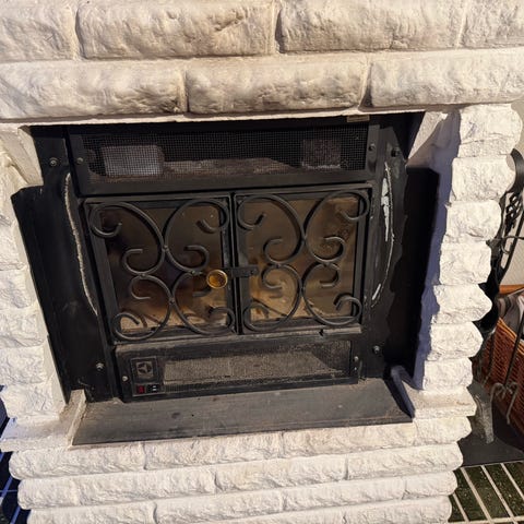 Kommer med tillbehör som eldstadsbeslag och fläkt.
