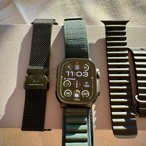 Apple Watch Ultra 3 Titan Svart 49mm bergsloop smartklocka med svart armband. Köpt i oktober men måste tyvärr sälja av personliga skäl. Allt med som kom då jag köpte den. Kan ta och skicka fler bilder vid behov. Skickar ej klockan om den inte betalas i förskott. Helst face 2 face. Kan möjligen bytas till äldre modell av iwatch men måste vara en av de större skärmarna.