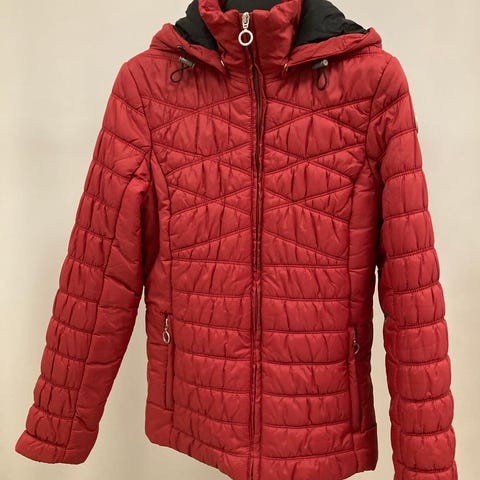 Vinterns modefärg vinröd! Rymlig varm modell som når halvvägs ner på låret på mig som är kort 160cm. Garderobsvärmare sen jag gick ner i vikt