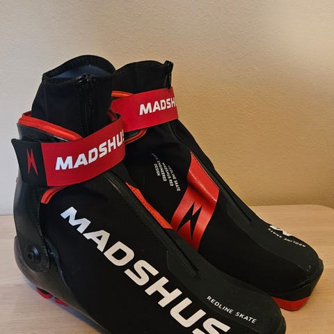 I princip nya madshus redline använd endast ett fåtal gånger, mycket skön och lätt pjäxa i carbon säljes endast för att de är något för stora för mig