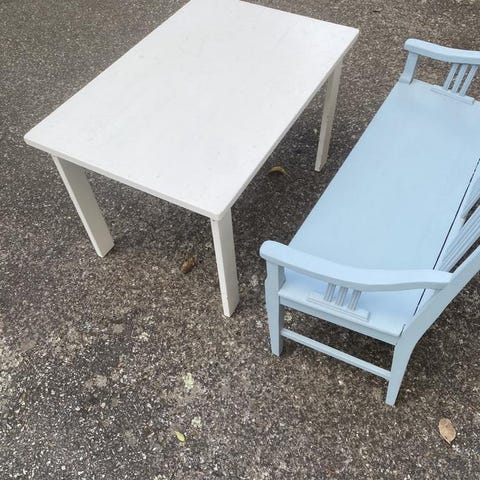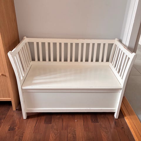 Den har ursprungligen varit målad rosa men har senare vitmålats, se bilder. Det finns en del avskavd färg och om man önskar kan man ju måla om den. I övrigt bra begagnat skick.
