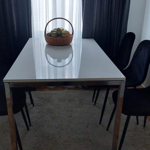 Säljer ny fyra stolar i sammet som nya och ett mindre bord från ikea.